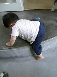 飽きたころに、いきなり階段をホイホ~イと上り始めました