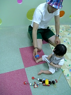 オット、初めての子育て支援センター。